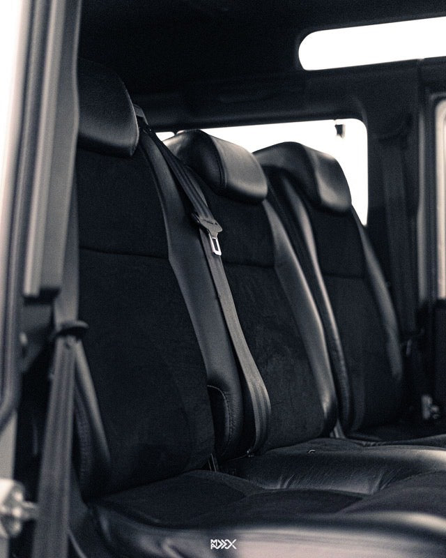 Rear and third row seats upholstered in leather and Alcantara
